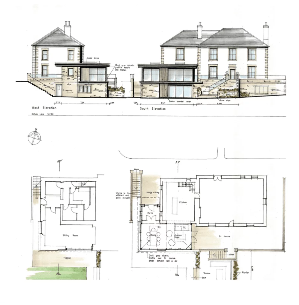 Taking an initial colour hand drawn drawing to the final building. We extended and refurbished this lovely period building.
